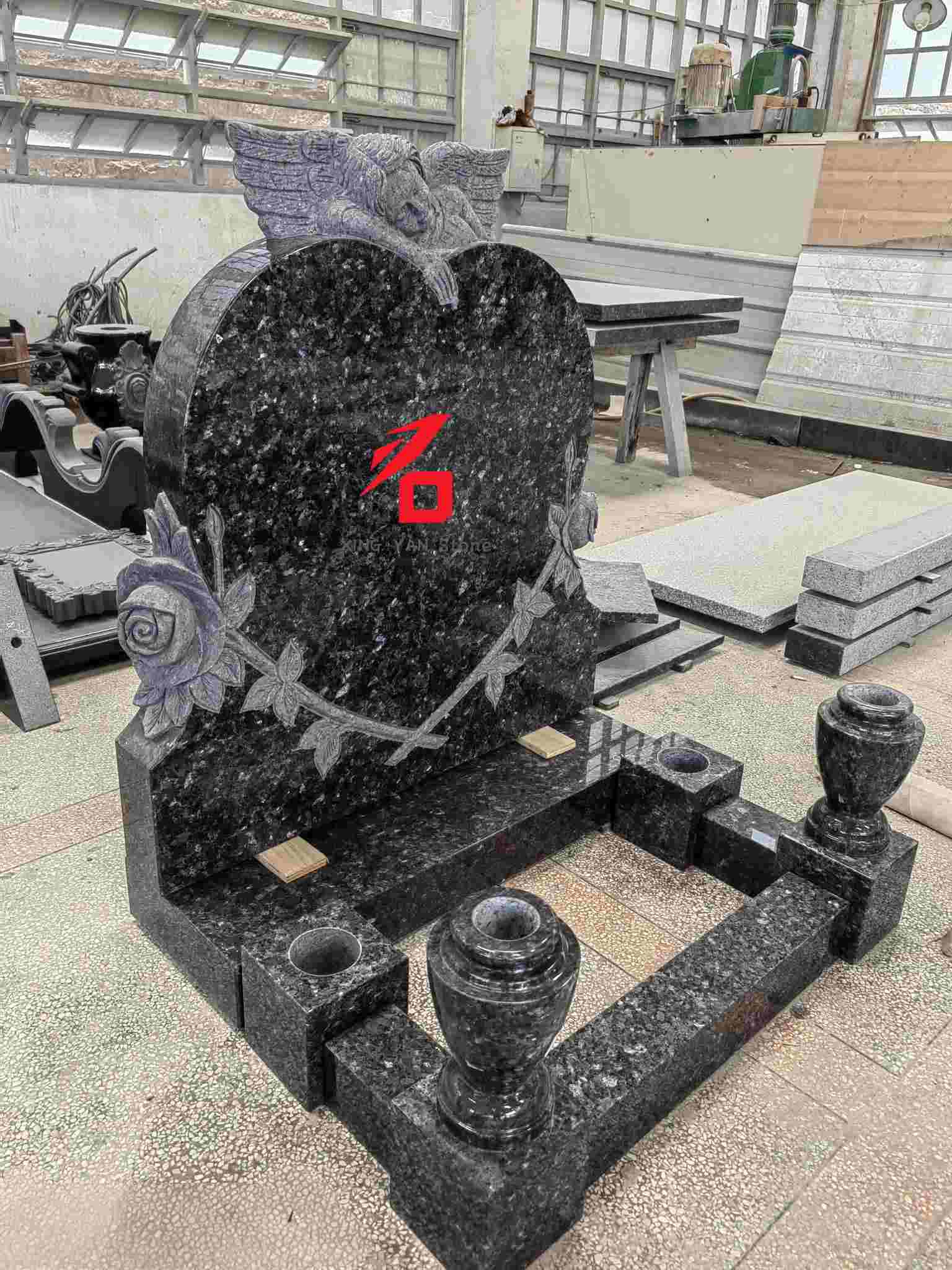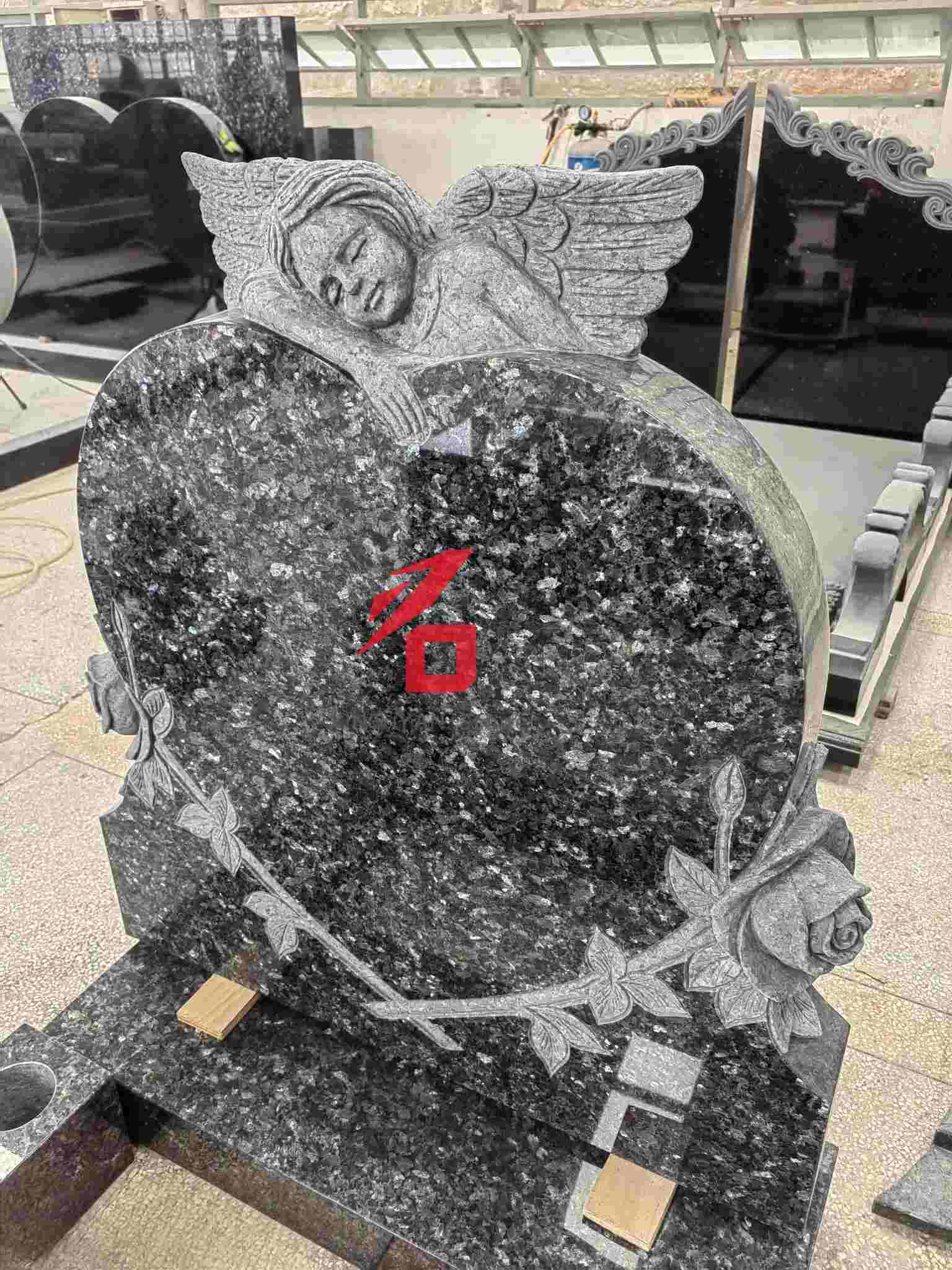 Desain: Batu nisan utama berbentuk hati, di atasnya terdapat patung bidadari, dan dikelilingi relief bunga mawar. Gaya keseluruhannya hangat dan berkesan;