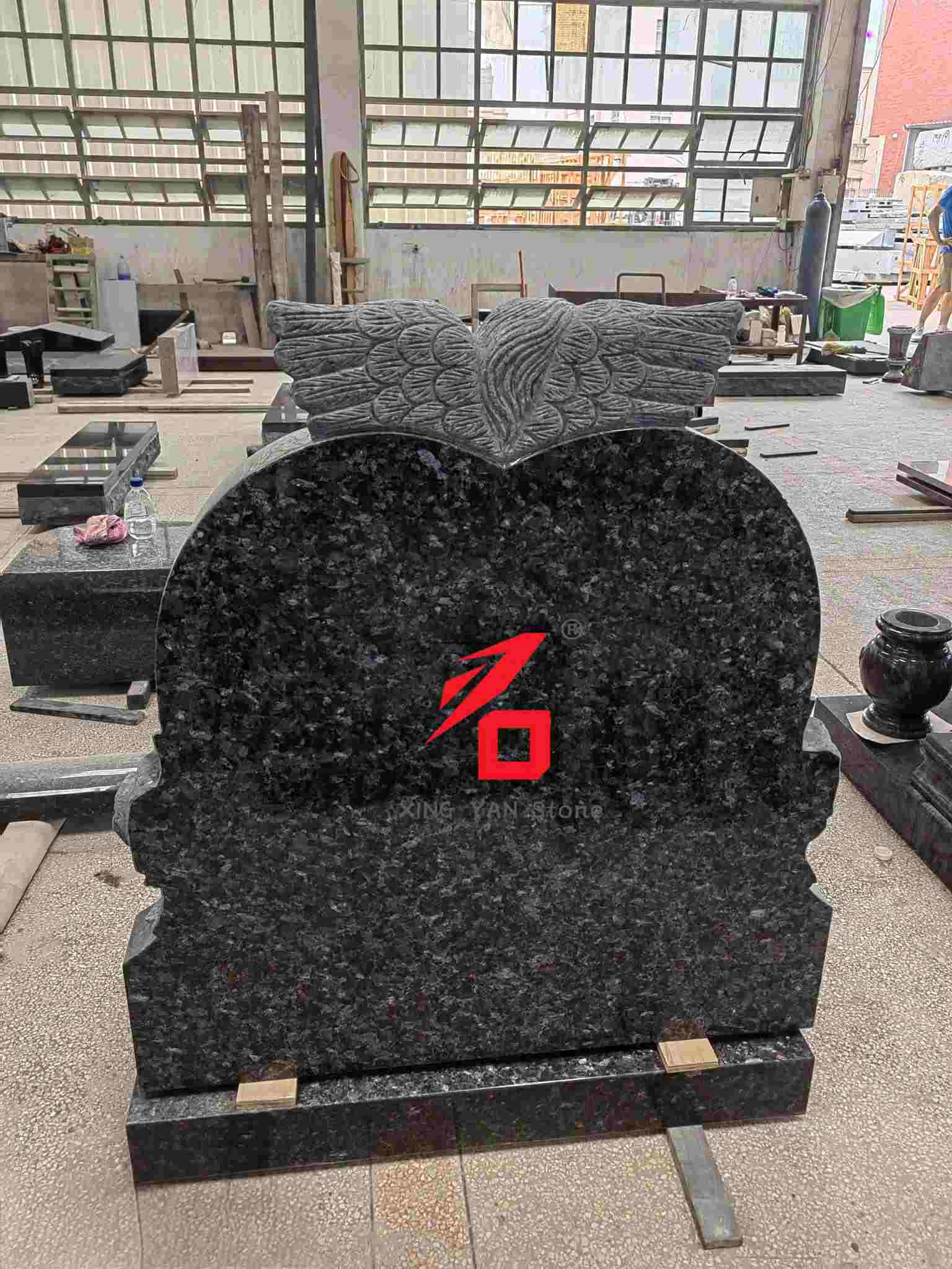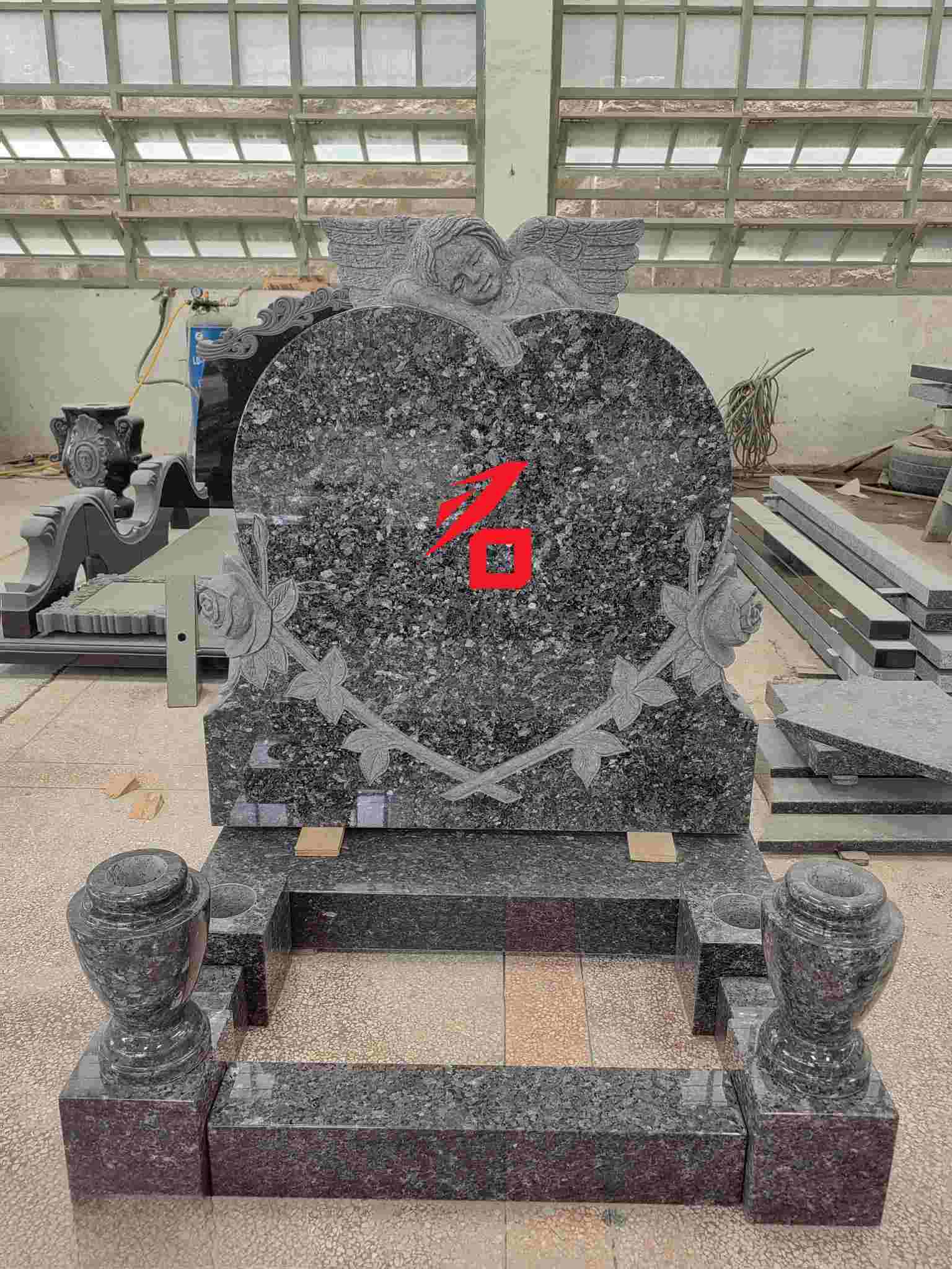 Bahan: Granit mutiara biru berkepadatan tinggi, keras dan tahan cuaca, dengan dasar gelap yang memancarkan kesan khusyuk dan bermartabat;