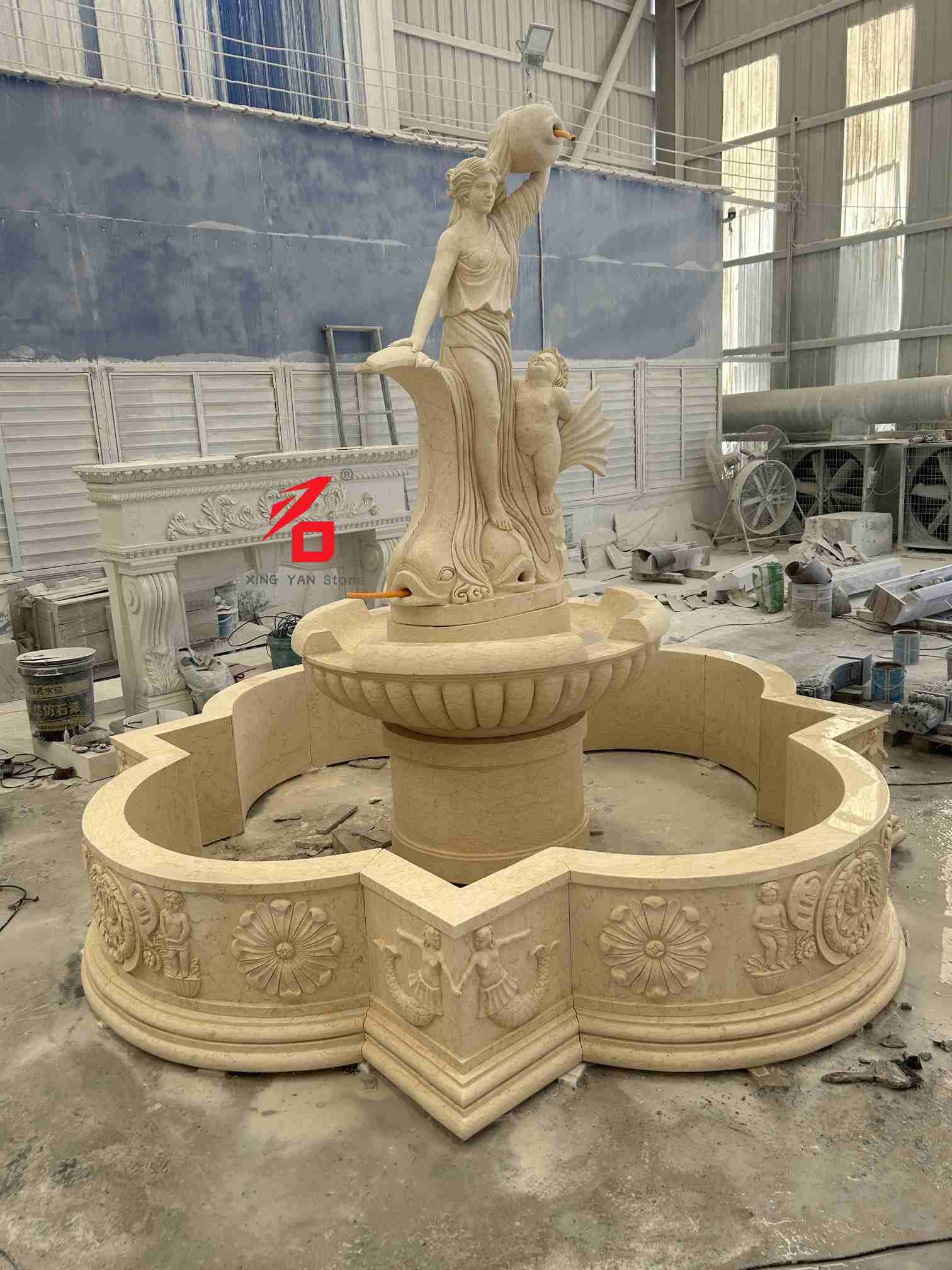 Xingyan Stone Sculpture Disesuaikan Air Mancur Patung Batu Double-Layer