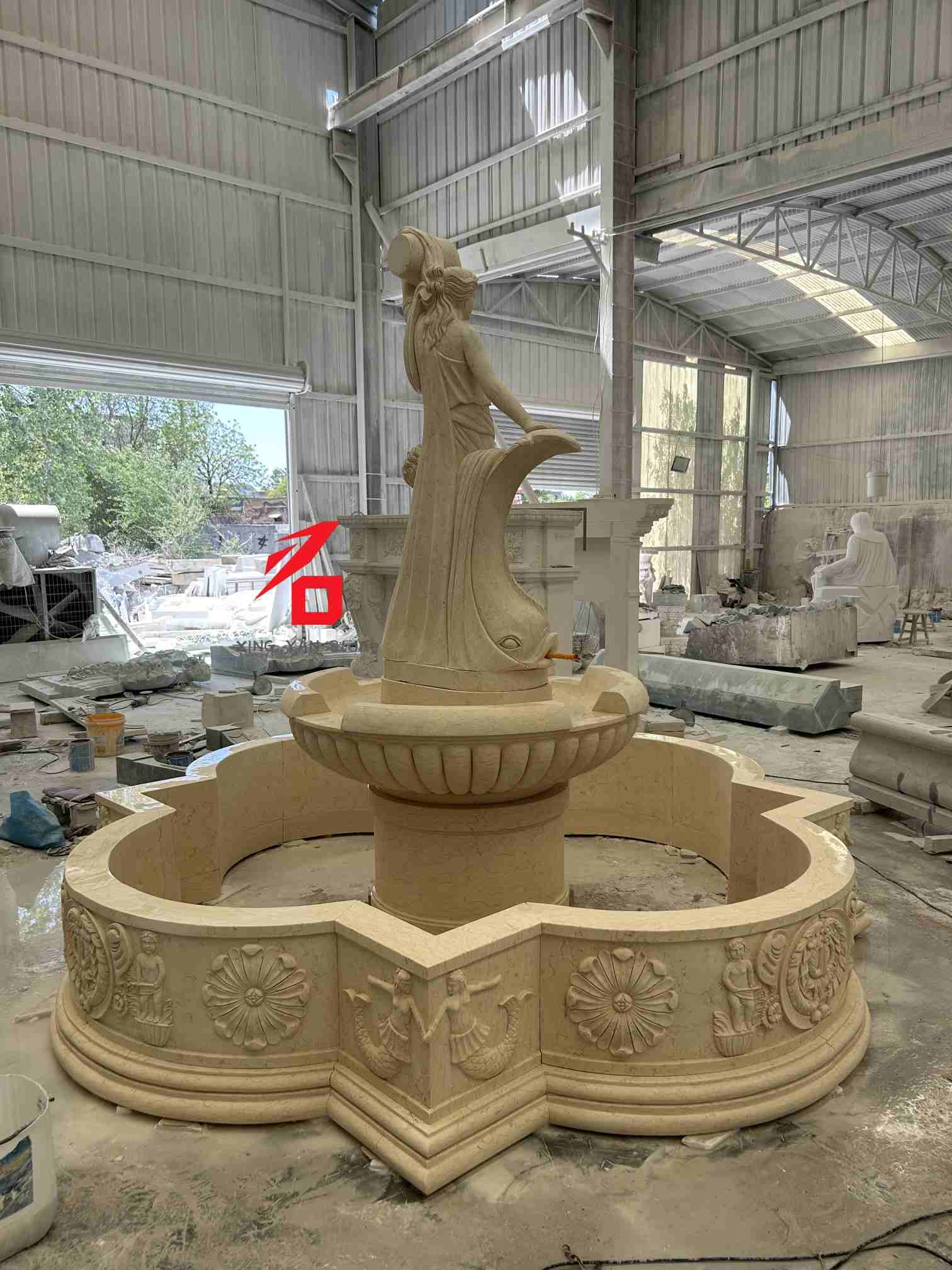 Pilihan Batu: Pilihan batu khusus meliputi marmer krem, marmer putih, batu pasir, dan batu alam lainnya. Tekstur batu yang halus, warna yang hangat, dan ketahanan terhadap cuaca yang kuat memastikan daya tahan air mancur dan daya tarik estetika untuk penggunaan luar ruangan jangka panjang. Keahlian Ukiran: Memanfaatkan teknik ukiran tangan tradisional, pematung berpengalaman dengan cermat membuat setiap detail, mulai dari ekspresi wajah dan tirai sang dewi hingga ornamen berbentuk anak dan ikan, menampilkan tekstur artistik dan tiga dimensi patung klasik Eropa.