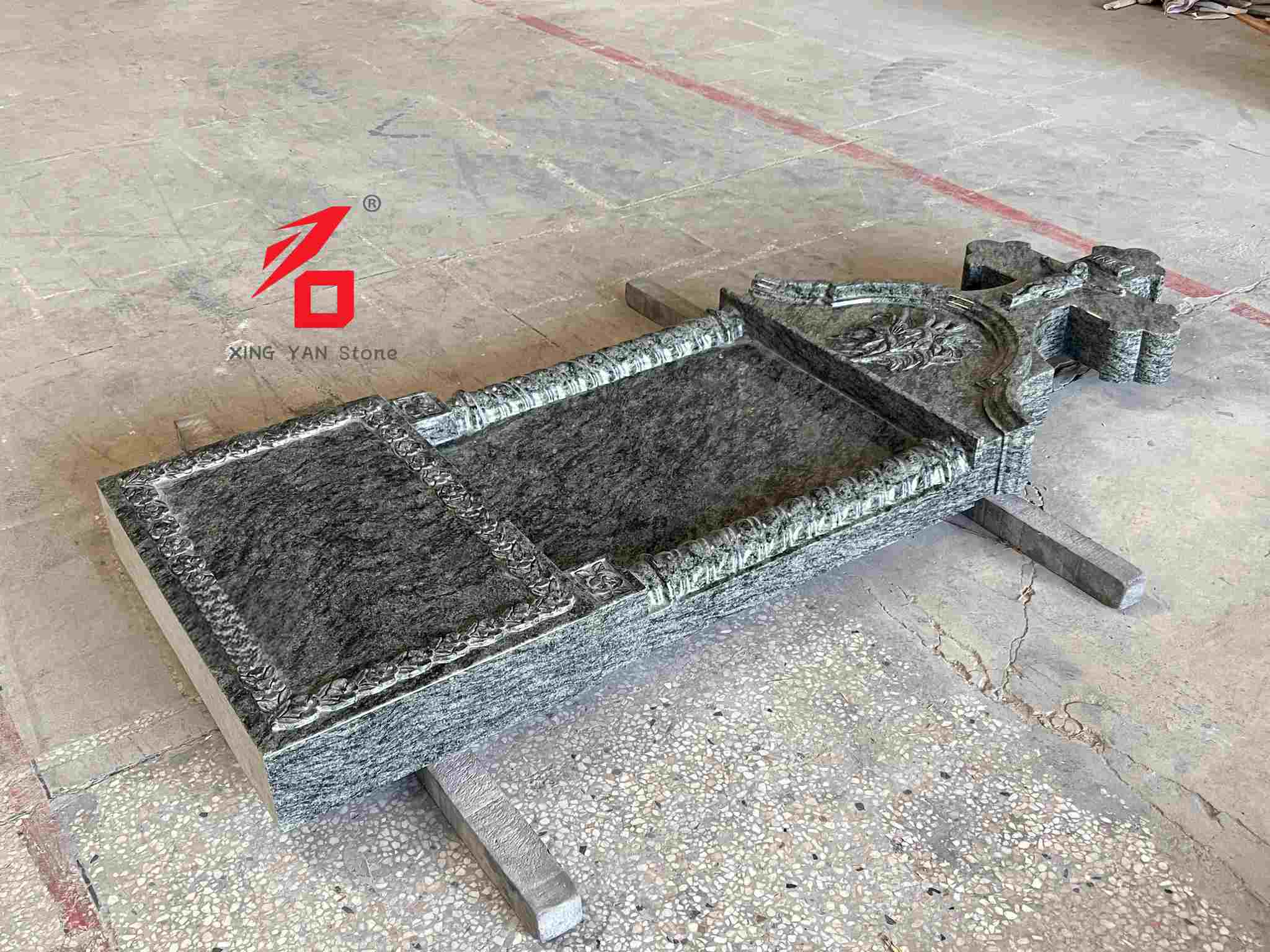 Bahan: Granit berkepadatan tinggi, keras, tahan aus, tahan cuaca, dan tahan korosi, memungkinkan pelestarian luar ruangan jangka panjang dan memastikan batu nisan tetap seperti baru.