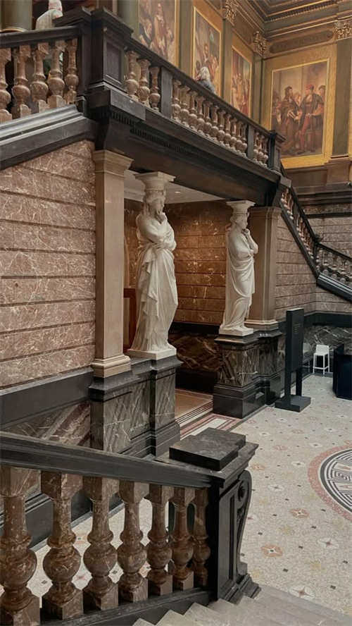 Penemuan Kuno - Kehadiran patung -patung kariatida dan gaya arsitektur keseluruhan sangat menyarankan ini adalah situs Eropa, mungkin di kota besar dengan museum seni atau sejarah yang signifikan.