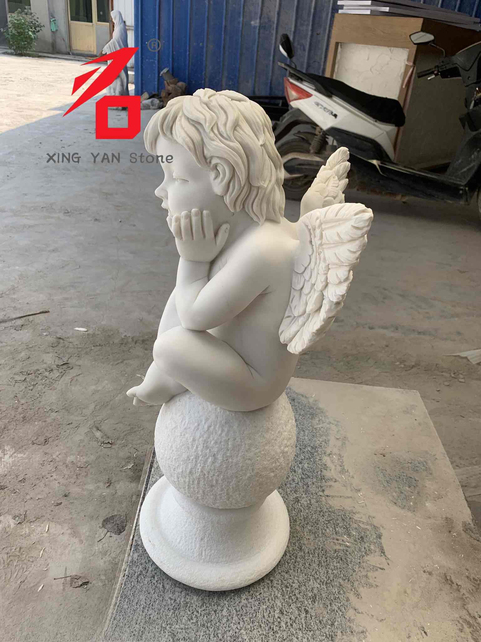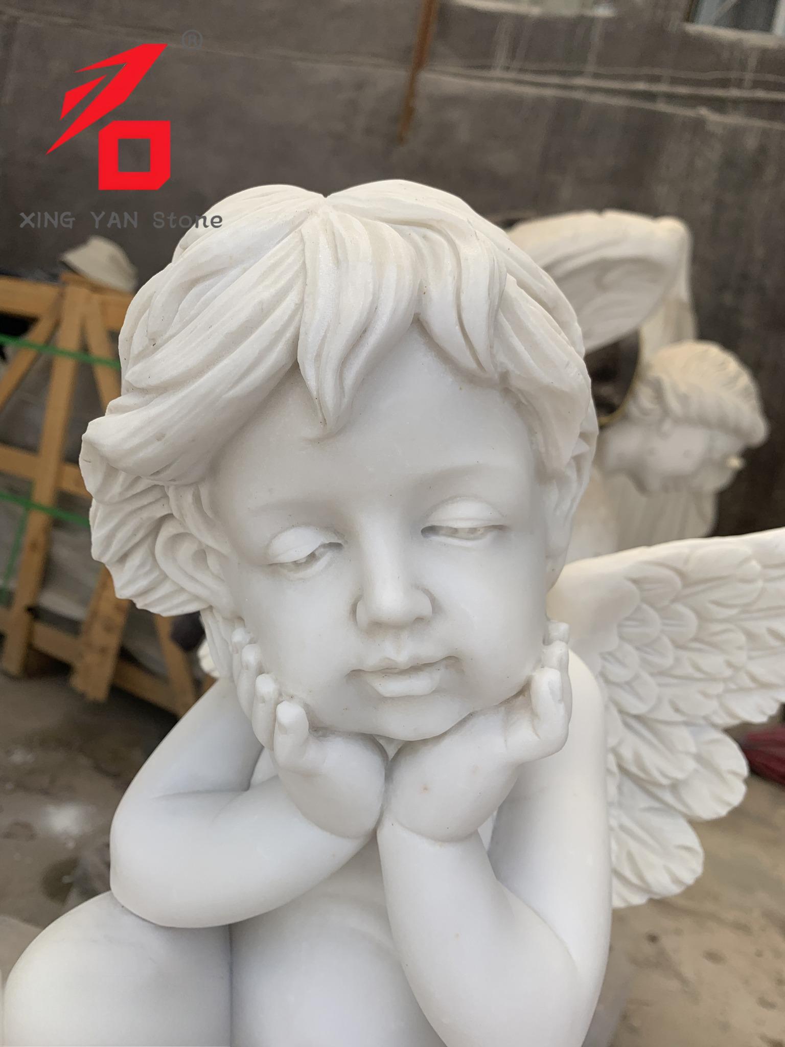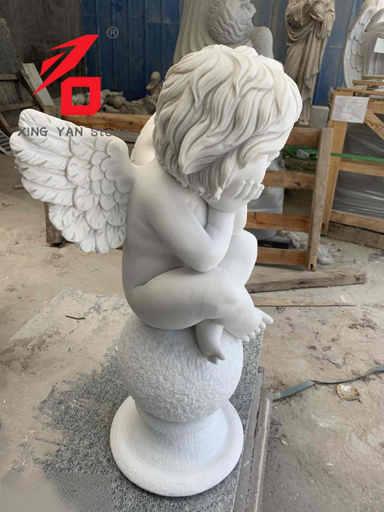 Gaya Desain: Mengadopsi gaya klasik Eropa, kerub digambarkan dalam pose kontemplatif, tangan menopang dagu, dengan ekspresi tenang. Sayapnya terdefinisi dengan jelas, dan tekstur bulunya berbeda, menciptakan nuansa romantis secara keseluruhan yang sesuai dengan kebutuhan dekoratif taman Eropa, situs keagamaan, atau tempat peringatan.